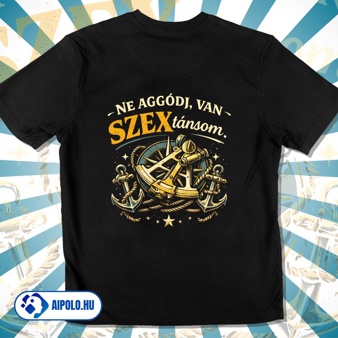 Ez a póló a vitorlázás és a hajós humor rajongóinak készült. Tökéletes választás kapitányoknak, matrózoknak, balatoni vitorlázóknak vagy bárkinek, aki szereti a tengerészeti szóvicceket és a jó hangulatú fedélzeti sztorikat. Ideális viselet vitorlázáshoz, kikötői estékhez vagy baráti hajós túrákhoz. A „Ne aggódj, van SZEXtánsom” felirat egy klasszikus hajós poénra épül: a szextáns a navigáció egyik legendás eszköze. A minta egyszerre humoros és hajós hangulatú, így garantáltan mosolyt csal azok arcára, akik értik a poént – és azokra is, akik csak sejtik.