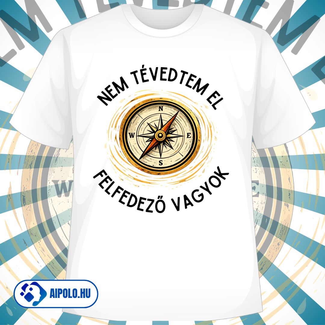 Ez a póló azoknak készült, akik szerint az igazi kaland ott kezdődik, ahol a térkép véget ér. Tökéletes választás túrázóknak, kirándulóknak, vitorlázóknak vagy bárkinek, aki szeret új helyeket felfedezni és nem ijed meg attól, ha néha letér a kijelölt útról. Remek viselet utazásokhoz, természetjáráshoz vagy egyszerűen azoknak, akik kíváncsiak a világra. A „Nem tévedtem el, felfedező vagyok” felirat humorosan és büszkén üzeni, hogy a kíváncsiság nem hiba, hanem erény. Egy karakteres, beszélgetést indító póló azoknak, akik tudják: néha a legjobb dolgok akkor történnek, amikor nem a megszokott irányba indulunk.